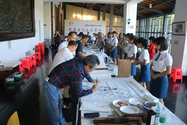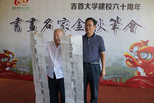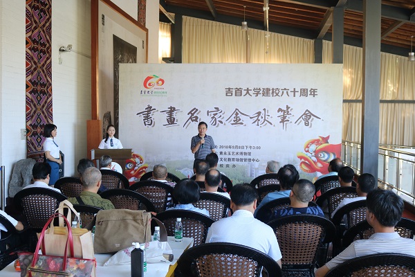 据主持人介绍,因故未能来到现场的著名书画家钟启和先生、毛光辉先生也于早前捐赠了自己的作品。本次笔会活动创作、捐赠的作品,将在“瞩目吉大——吉首大学建校六十周年书画作品展”中进行展出。