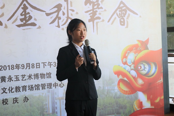 吉首大学书法协会余迈新同学发言。她讲述了自己与书法结缘的故事。