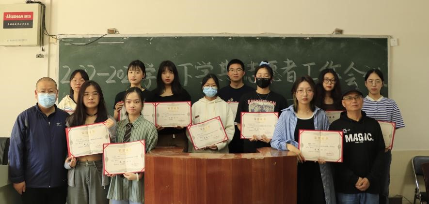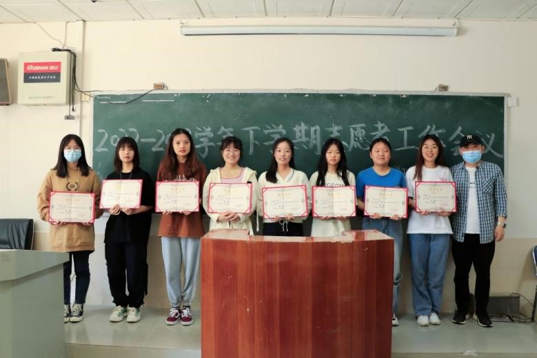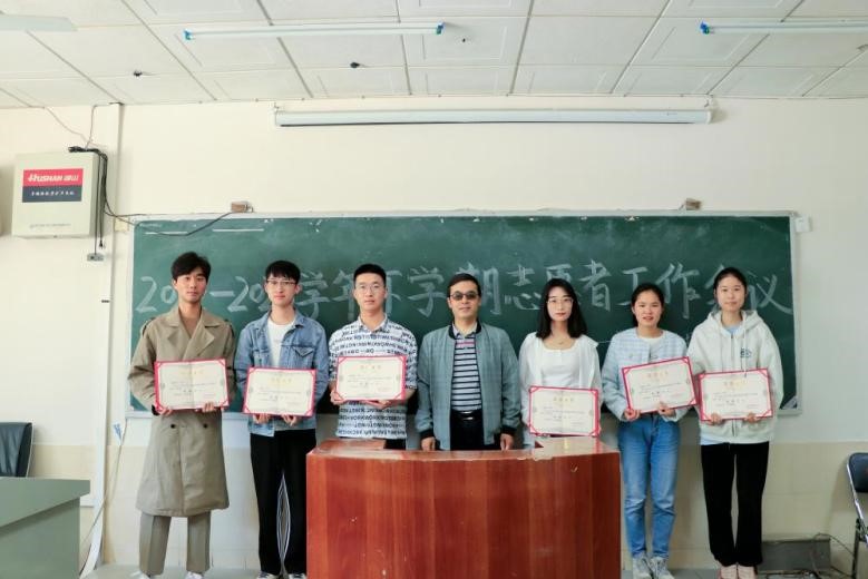 接着,徐毅豪宣读上学期星级志愿者名单,综合考虑上学期值班量、讲解量等,共有刘亮等6名同学获评五星级志愿者,吴婉奕等10名同学获评四星级志愿者,胡阳骞骞等14名同学获评三星级志愿者。杨龙斌、吴红波、何伟、张敏波分别为五星级志愿者、四星级志愿者、三星级志愿者颁发荣誉证书。