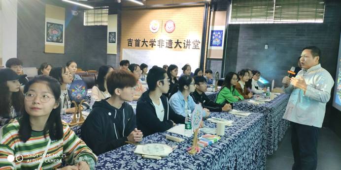 (本网讯学生记者李雨祺)为弘扬优秀民族文化,宣传和普及湘西州非物质文化遗产,吉首大学文化教育场馆管理中心与湘西州文旅广电局合作,决定在文化沙龙创建武陵山区土家族苗族文化生态保护区吉首大学非遗研习基地,并定期举办非遗大讲堂。