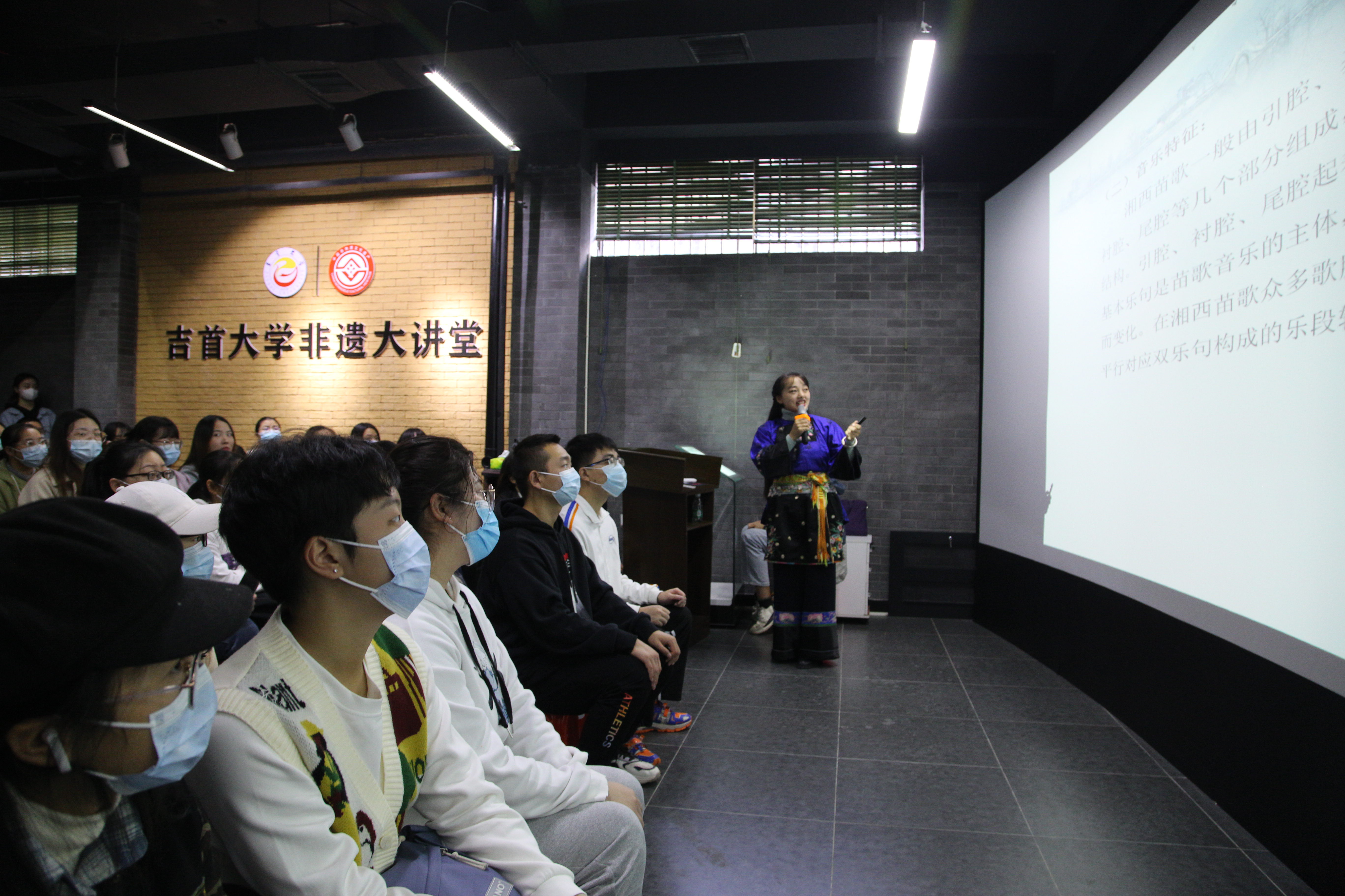 一声入耳,天籁永存,湘西苗族民歌是苗族人民最喜爱的歌唱艺术形式之一,流传于湖南省湘西土家族苗族自治州、湖北省恩施土家族苗族自治州等多地区。此次非遗大讲堂活动,不仅使大学生深入了解了作为非遗项目的苗族民歌的历史发展和基础知识,还提高了大学生传承和保护民族传统文化的意识,增强其对民族文化的认同感与归属感。