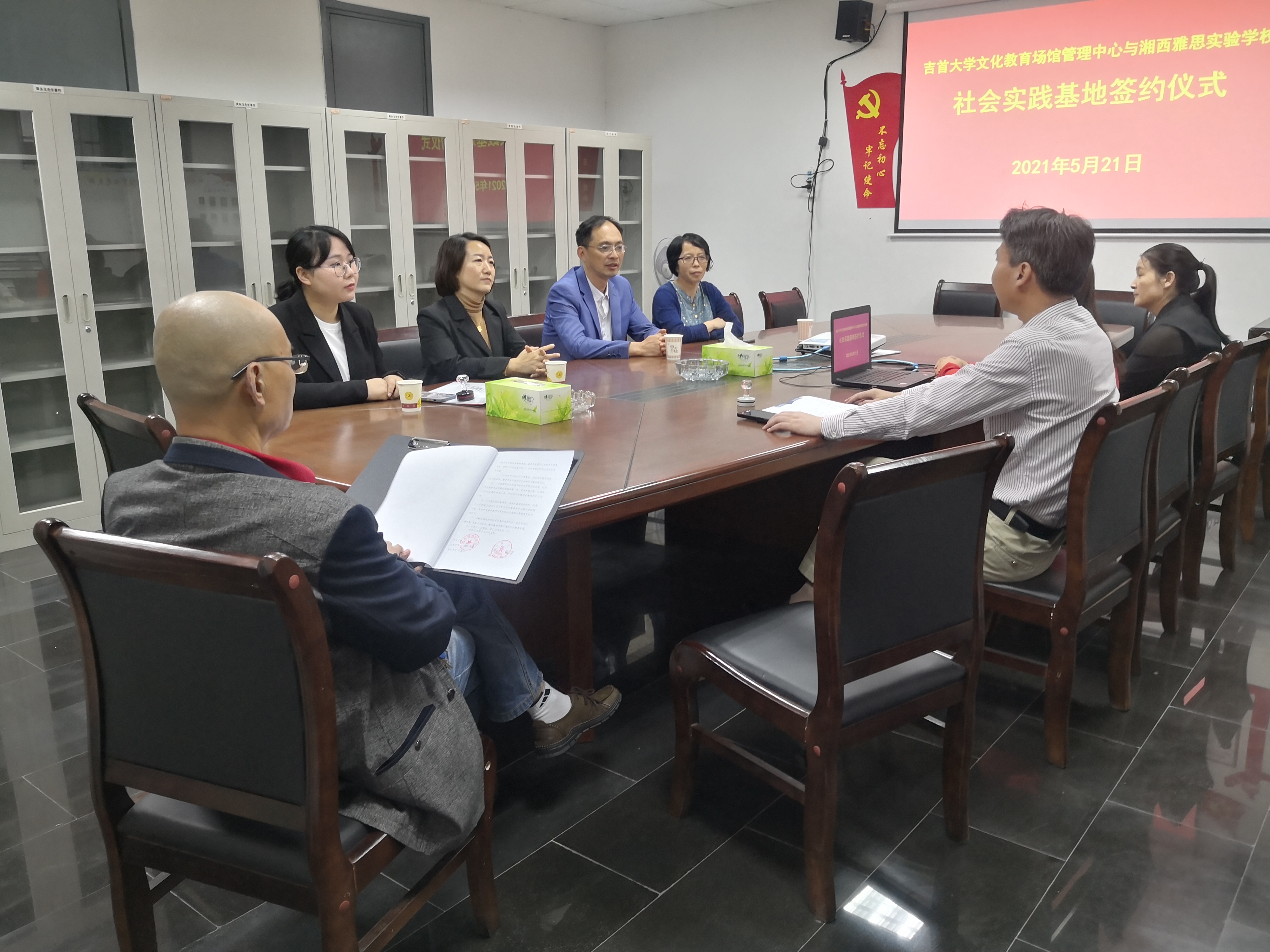 本网讯(张敏波)2021年5月21日,湘西雅思实验学校执行校长麻二平与我校文化教育场馆管理中心社会实践基地签约仪式成功举办。湘西雅思实验学校每学年安排其英特班学生到基地开展社会实践活动,我校文化教育场馆管理中心提供有利条件,指导英特班学生开展实践活动,保障实践活动顺利进行。