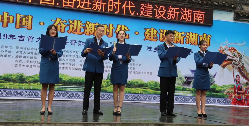 本网讯(学生记者魏嫣然 杨晓维)2019年5月18日上午,为了更好地传承与创新民族文化,更好地促进民族团结进步,更好地发挥高校的文化育人功能,我校师生来到了中国苗族地区最大的书院——三潭书院及其所在地吉信完小举办“2019年吉首大学科普知识宣传进校园、进乡镇系列活动”。全体老师及志愿者,吉首大学各职能部门相关负责人、凤凰县吉信镇有关人员、吉首大学艺术团、体育学院、资环学院、音舞学院的部分师生,参加此次活动。