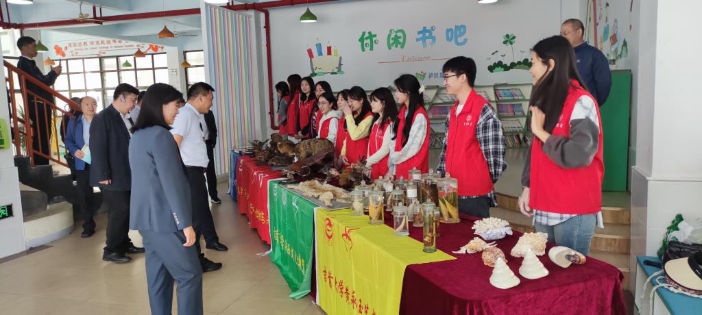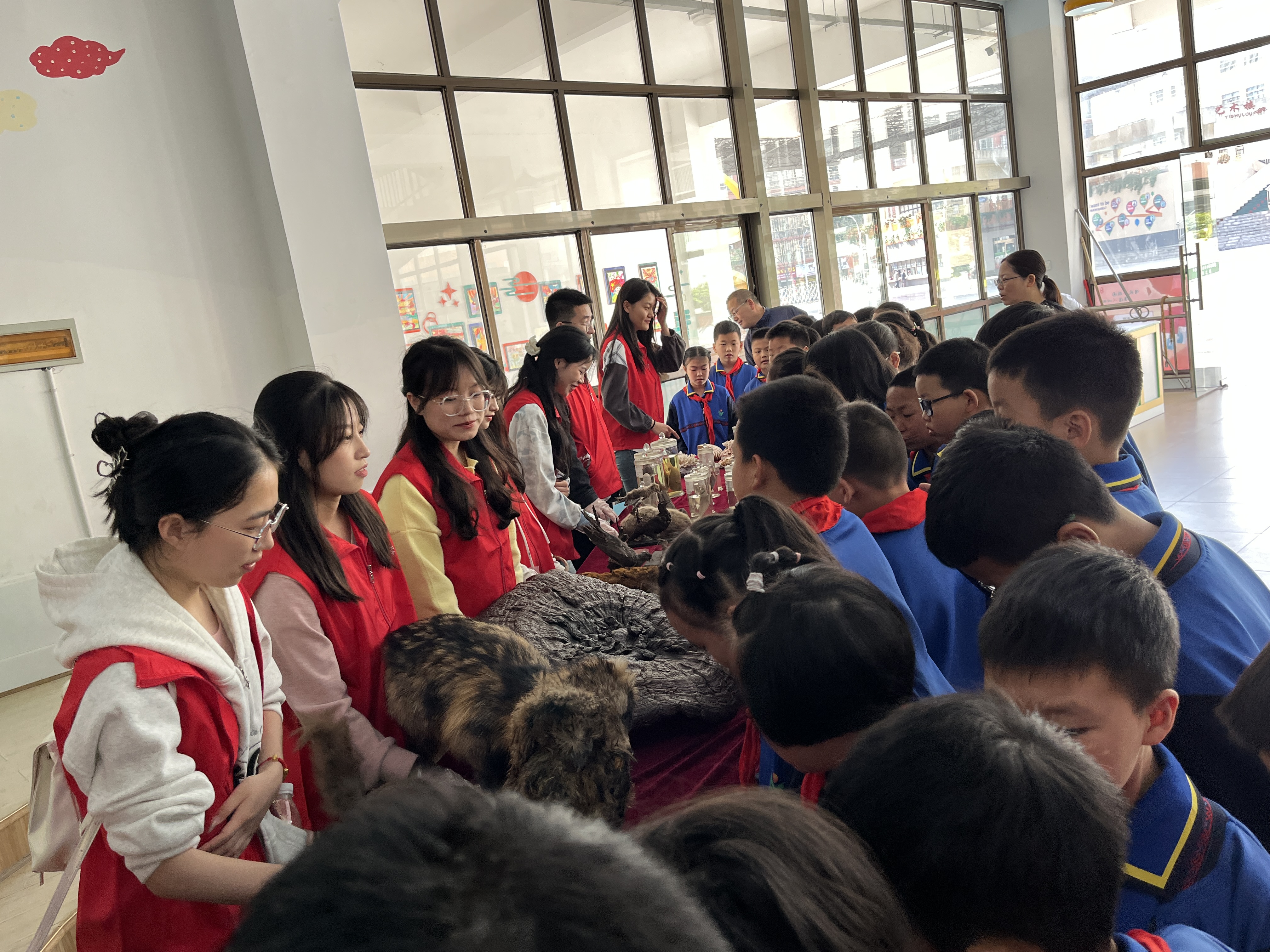 在动植物标本展示活动现场,大学生志愿者们展示世界的多样性和奇妙性,介绍各种动物的习性、特点和生存环境。小学生们近距离观察和触摸动植物标本,认真聆听讲解,不时发出惊叹和欢呼声。此活动旨在倡导小学生们热爱大自然,愿意为保护动物和环境贡献自己的力量。在科普展板展示活动现场,重点展示沈从文物质文化史、书法作品、文学作品等。