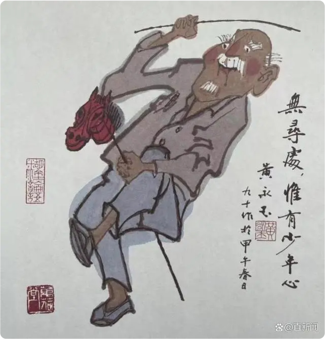 黄永玉作画,丝毫不在意世俗的眼光。他的彩墨人物画和小品图时常被人津津乐道,画中诙谐幽默的形象和题跋,点透世间的人生百态,对事物毫不隐讳的真实表达,显露出他玩味一生的人生态度。