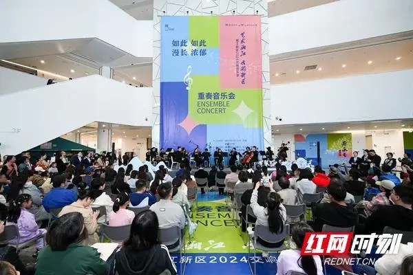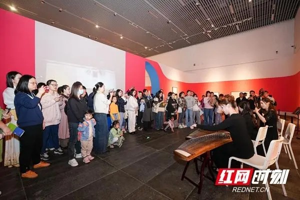 活动现场。红网时刻新闻11月18日讯(通讯员 黄文旭 记者 胡邦建)音乐,是流动的色彩,是心灵的交响;而美术,则是凝固的旋律,是视觉的盛宴。2024年11月17日,“如此漫长·如此浓郁——重奏音乐会”在湖南美术馆开展,这场美术馆与交响乐的跨界相遇,既是湖南美术馆开馆五周年的创新尝试,也是公共文化场馆的融合发展、城市“大美育”体系的联合发力崭新起点。本次活动由湖南湘江新区宣传工作部、湖南美术馆主办,湘江新区(岳麓区)文化馆·图书馆、湖南工商大学音乐学院承办。活动将“美术展览”与“音乐演奏”相联结,将音乐作为画笔,以艺术展览作为舞台,与艺术作品相结合开展跨界音乐会,打破了公众们传统印象中静态艺术展概念,将民乐合奏、弦乐四重奏、木管五重奏等音乐互动的形式巧妙地融入各个展厅当中,使得公众们可以更加立体丰满地了解黄永玉先生的艺术世界。活动当天,以“如此漫长·如此浓郁——黄永玉新作展”为基点,1+3场音乐演奏会、1场学术讲座、7个互动活动同时面对公众开放。学术讲座邀请了知名艺术家以及黄永玉的家属从黄永玉的传奇人生、生命维度、精神张力等多角度分享了《一个人应当活成什么样范——聊聊黄永玉的艺术人生和人生艺术》。现场还开放了多个创意互动区,包括“非遗传承“满天星斗”青苗秀艺术展示、“艺术导览+奇趣创作——用自己的表达方式画十二生肖”长卷绘制活动、“人生哲学”碰上“诗歌接力”互动活动、当“小顽童碰到老顽童”“艺”起撒野吧创作活动、当“艺术滚筒”遇上“万物皆可印”等互动活动。现场观众们直呼:“这样的跨界融合活动不仅丰富了市民的文化生活,也推动了艺术领域的发展与交流。”接下来,湖南美术馆还将进一步创新展览形式,开展跨界交流活动,推动文化艺术融合,为广大公众带来更多元化的艺术体验。