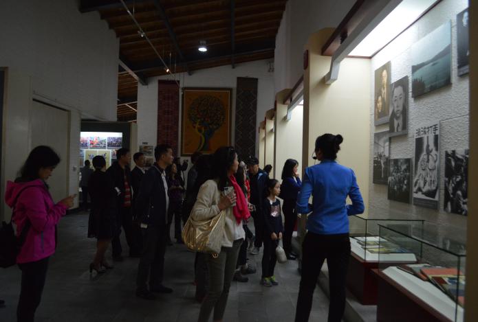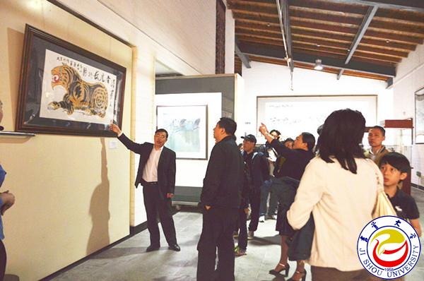 马清楠一行在博物馆志愿者讲解员的带领下,一一参观了博物馆序厅、艺术人生、书画天地、收藏世界等展厅,认真领略了黄永玉老先生充满传奇色彩的艺术人生,并在黄永玉风趣的画作前驻足欣赏,对黄永玉的睿智和幽默深感钦佩。在参观过程中,黄昕副校长不时为来宾补充讲解黄永玉的有趣故事和画作的背景故事。
