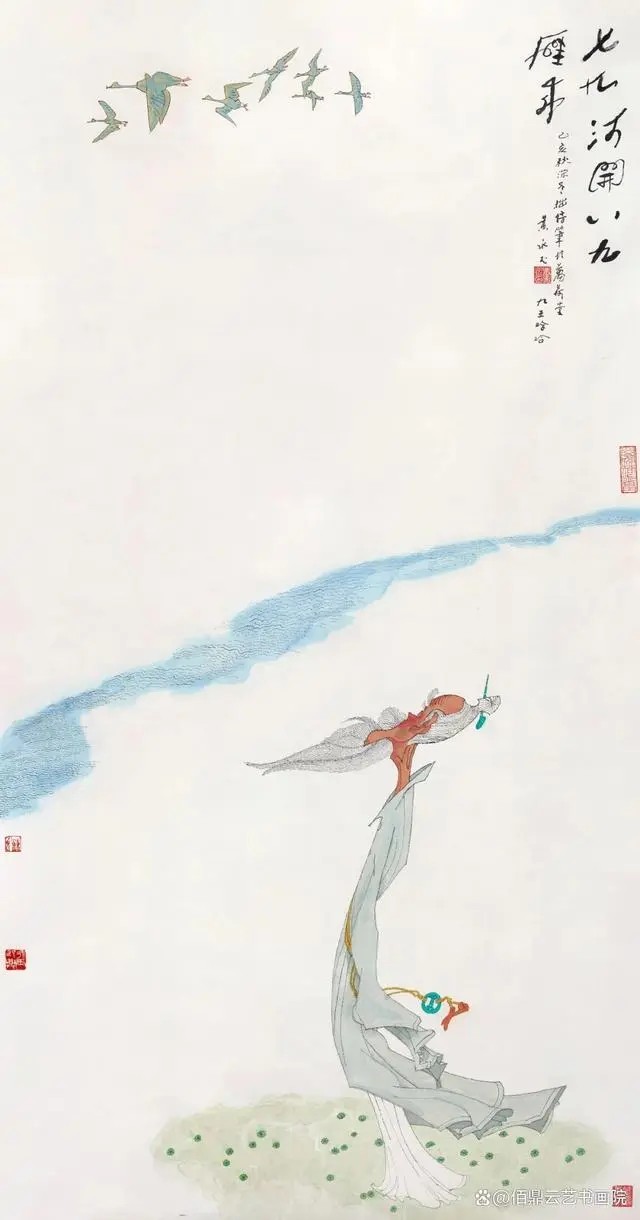 黄永玉《七九河开八九雁来》180×97cm 纸本设色 2019年