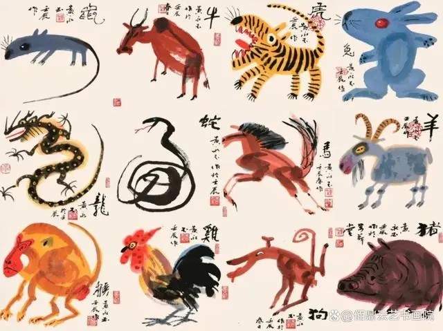 黄永玉《十二生肖》(绘画12件)34×34cm×12 纸本设色2012年