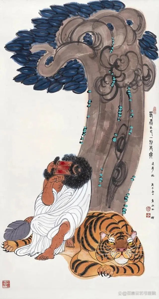 黄永玉《达摩伏虎》179.5×95.5cm纸本设色1990年