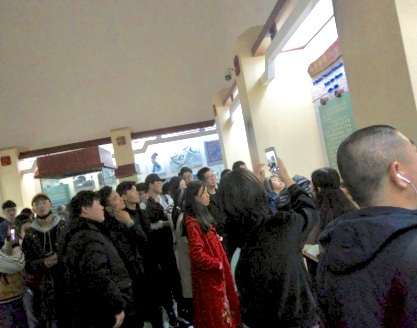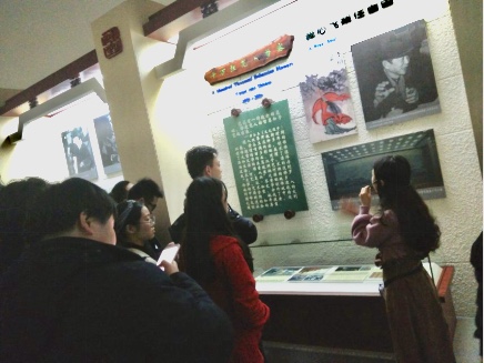 在参观过程中,艺术学院的同学们对黄永玉的艺术作品极为感兴趣。在讲解员讲到黄永玉的木刻作品《春潮》时,他们对黄永玉坚持不懈且认真的态度表示赞叹与欣赏。参观过程中,同学们井然有序,且对黄永玉的作品怀着极大的兴趣,纷纷拿出手机拍照并不时向讲解员提出相关问题。在讲到最后一副作品《春江花月夜》时,艺术学院的老师及同学都发出了赞叹的声音,被黄永玉所画的与整副画格格不入的孤独的老人与狗这一点睛之笔所吸引。