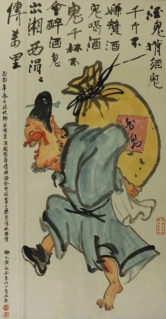▲ 新世纪后,黄永玉先生为湘酒鬼公司设计推出的,谓之“窖藏有限,喝一瓶少一瓶”的内参酒