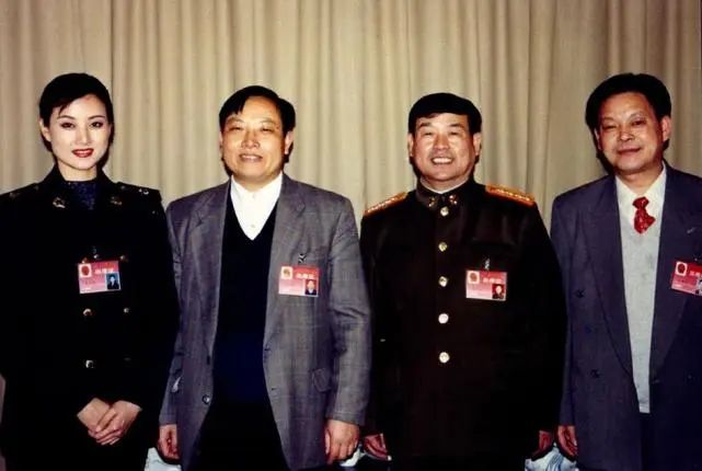 ▲ 2000年3月,湘西州籍全国人大代表(从右到左)王锡炳、彭楚政、武吉海、宋祖英参加九届全国人大第三次会议,一起商议争取湘西州8个县市进入国家级贫困县的建议