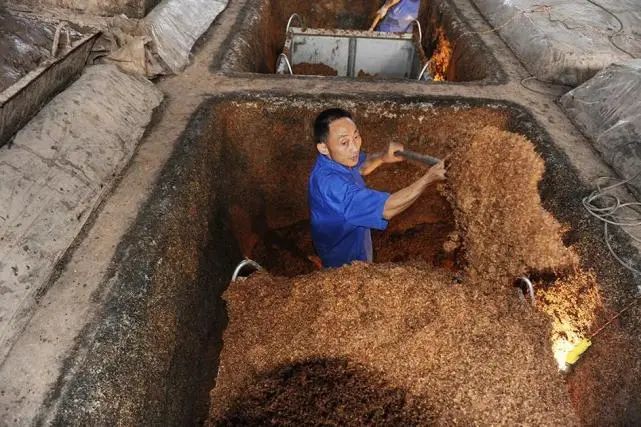 ▲ 入窖池发酵,窖池深2米多,可装10个立方,四周敷老窖泥,发酵周期为60天