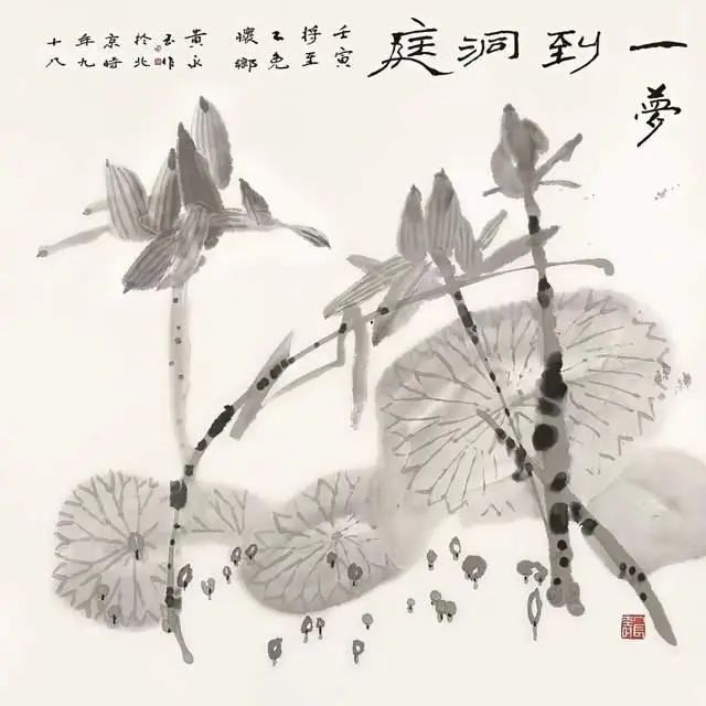 黄永玉听到这件事后,不再说话。房间里只有水池里的流水声。几天后再次拜访,一见面他就要我看新画,那是一幅淡墨荷花,题名《一梦到洞庭》。他指着上面的荷花,「曾祺看了会开心的。」