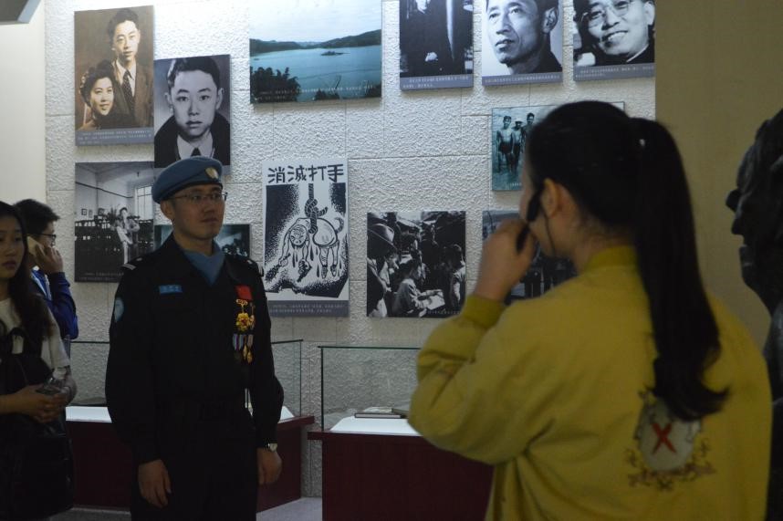 (图为志愿者王楠为参观嘉宾进行讲解 杨晓维摄)