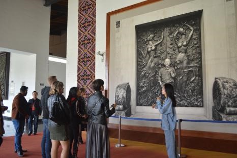 本网讯(学生记者梁芷馨)2018年10月12日,迎来了吉首大学六十周年华诞,坐落于风雨湖畔旁的吉首大学场馆中心也迎来了一批又一批来自世界各地参观的校友及嘉宾。博物馆秉承着“有朋自远方来,不亦乐乎”的态度,志愿讲解员们拿出了他们最好的风貌,带着客人们对我文化场馆中心六个馆进行参观及讲解,感受了博物馆的文化内涵和我校历史。