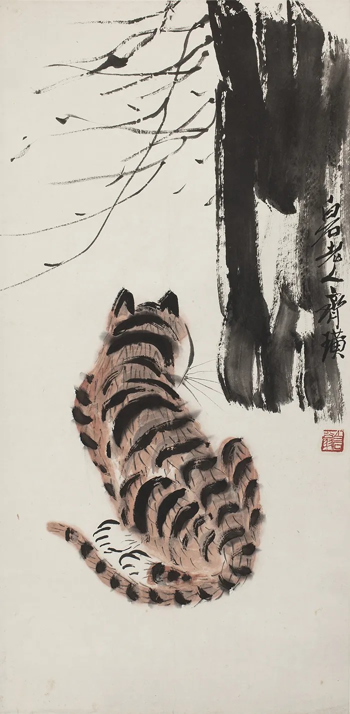 虎 齐白石 纸本水墨设色 68.5cm×36cm 1940年代(图片来源:清华大学艺术博物馆)