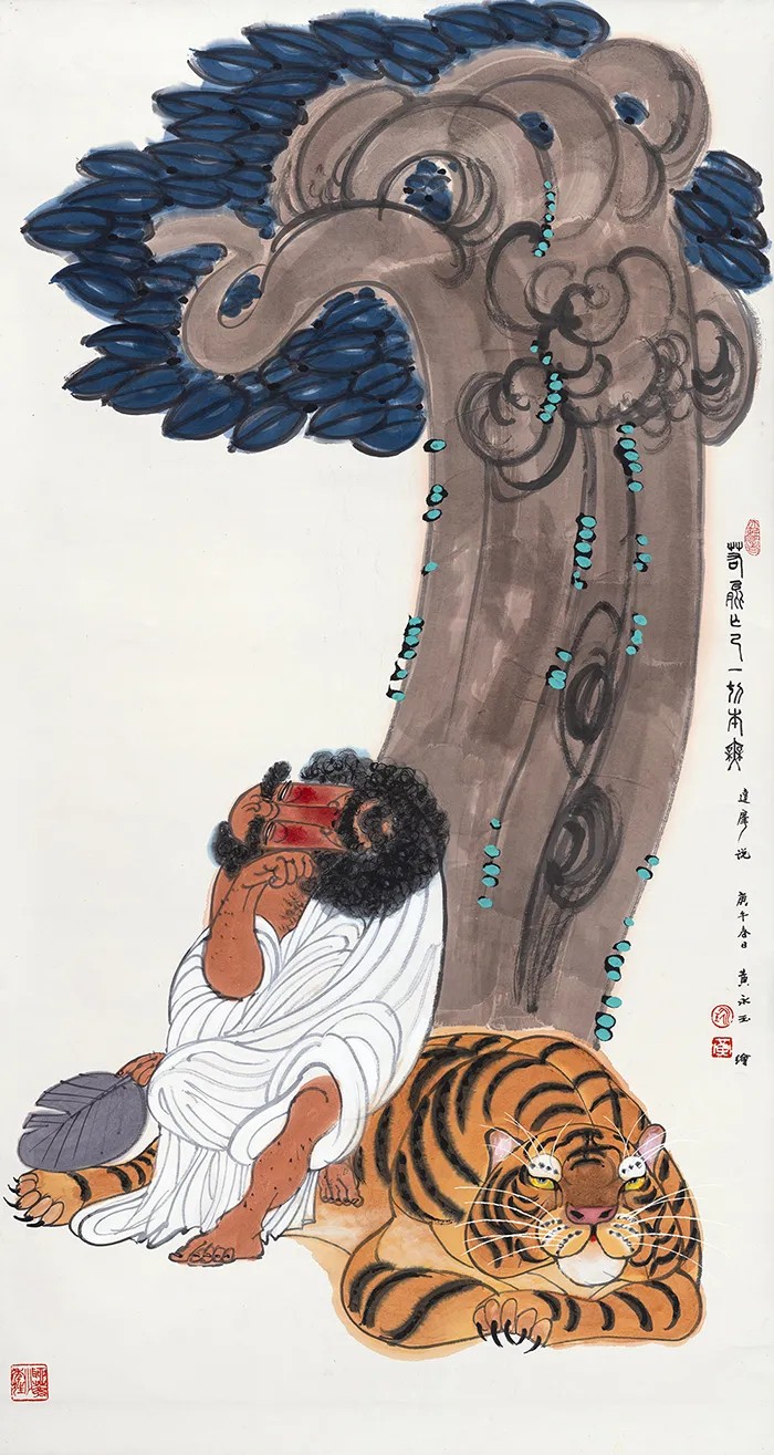 “森山漫录”拥抱野性,向自然敞开。在动物身上,我们大抵能够窥见那“已被我们遮蔽的开阔镜像”。齐白石的虎背向观众,显出矜持之态,宛若一只大猫,简洁的笔墨爽朗利落,轻松活泼。黄永玉《达摩伏虎图》中的虎尽显霸气与威严,劲道的线条勾勒出有力的造型,《刺猬之道》和《猫头鹰论》借动物讽喻人与人之间的微妙关系。动物们在山林中肆意生长,自由之美跃然纸上。
