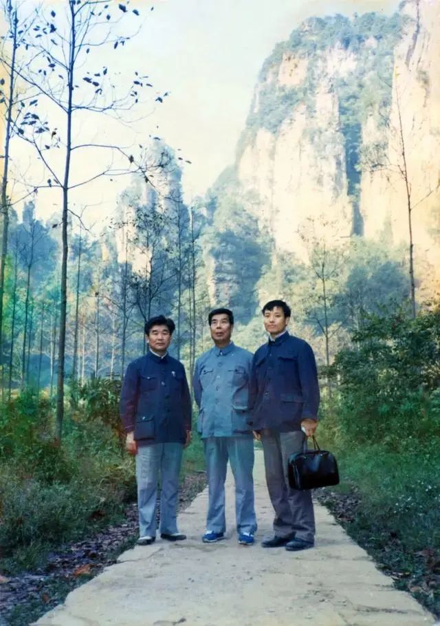 ▲ 1987年,作者(右一)陪同上海南市区区长王仲达(中)考察吉首联营企业后到张家界金鞭溪。当年,南市区帮助吉首多家企业对口联营,走出困境