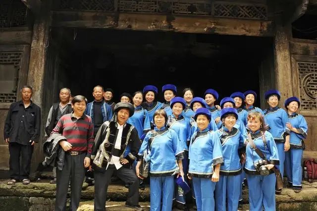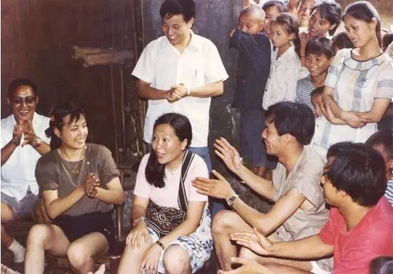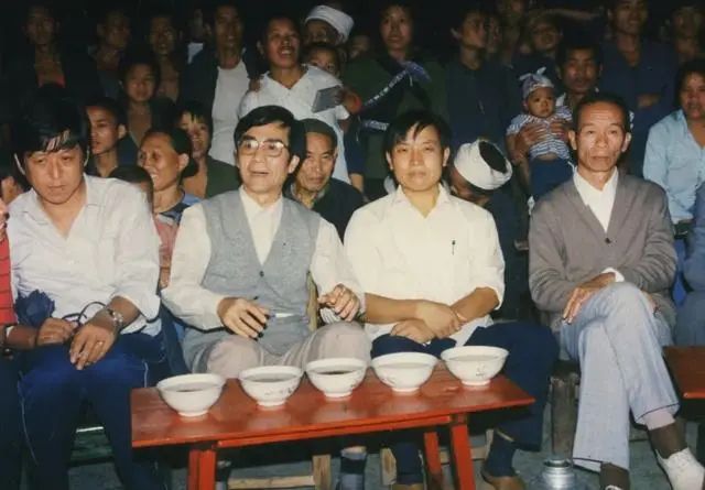 ▲ 1986年,电影《芙蓉镇》剧组谢晋导演、刘晓庆(左二)等一行到吉首市矮寨镇吉斗苗寨作客