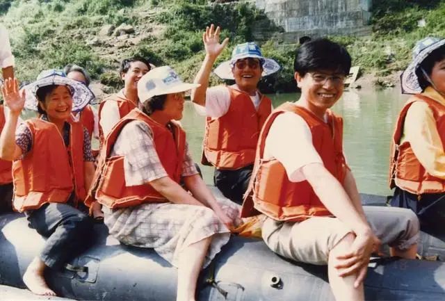 ▲ 20世纪90年代,时任湘西州委书记石昌禄(前排左三)与吴沅生(后排左一)、武吉海(后排左三)、向厚兴(前排左一)、何剑(后排左二)等同志陪同上级来客体验永顺猛洞河漂流