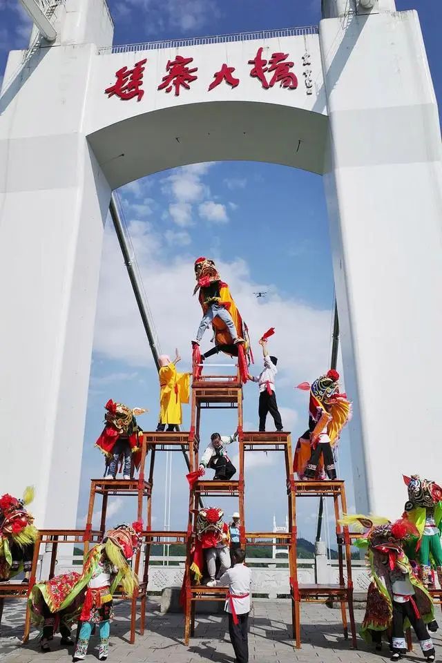 ▲ 吉首市近年打造的矮寨大桥景区,鼓文化节、百狮会等民族节庆活动做得风生水起