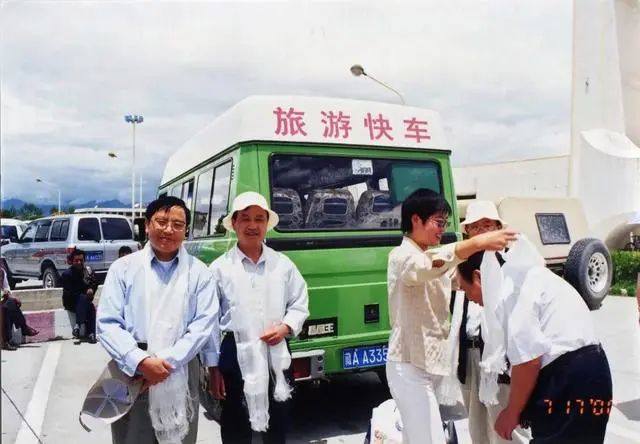 ▲ 2000年,武吉海与时任州旅游局局长谢宗印(左二)、州民委主任梁远邦(左四)、州政府秘书长罗天明等参加乌鲁木齐中国国内旅游交易会后考察西藏旅游