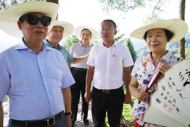 ▲ 湘西州委常委、宣传部长杨彦芳与一些老同志考察龙山县惹巴拉民宿(前排左二起:龙颂江、武吉海、向世林;二排左一起:徐克勤、田家贵、杨彦芳)