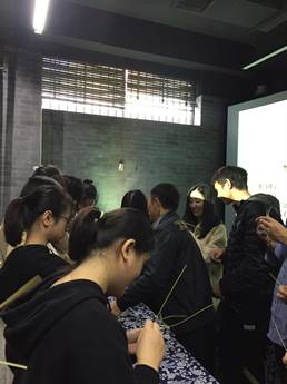 课堂一开始,胡廷贤老师先介绍了湘西竹编的历史,并说:“湘西,离不开背篓,湘西的历史,是背篓上的历史,也是背出来的民族。”湘西竹编有1000多年历史,胡老师从16岁时便开始学习竹编,进入这个行业近四十年,他从芙蓉镇开始做竹编,并且还参加了美术工艺大赛,获得了许多奖项。介绍完之后,胡老师便教给大家一些简单的竹编手法,让大家自行动手实践,学习湘西竹编。
