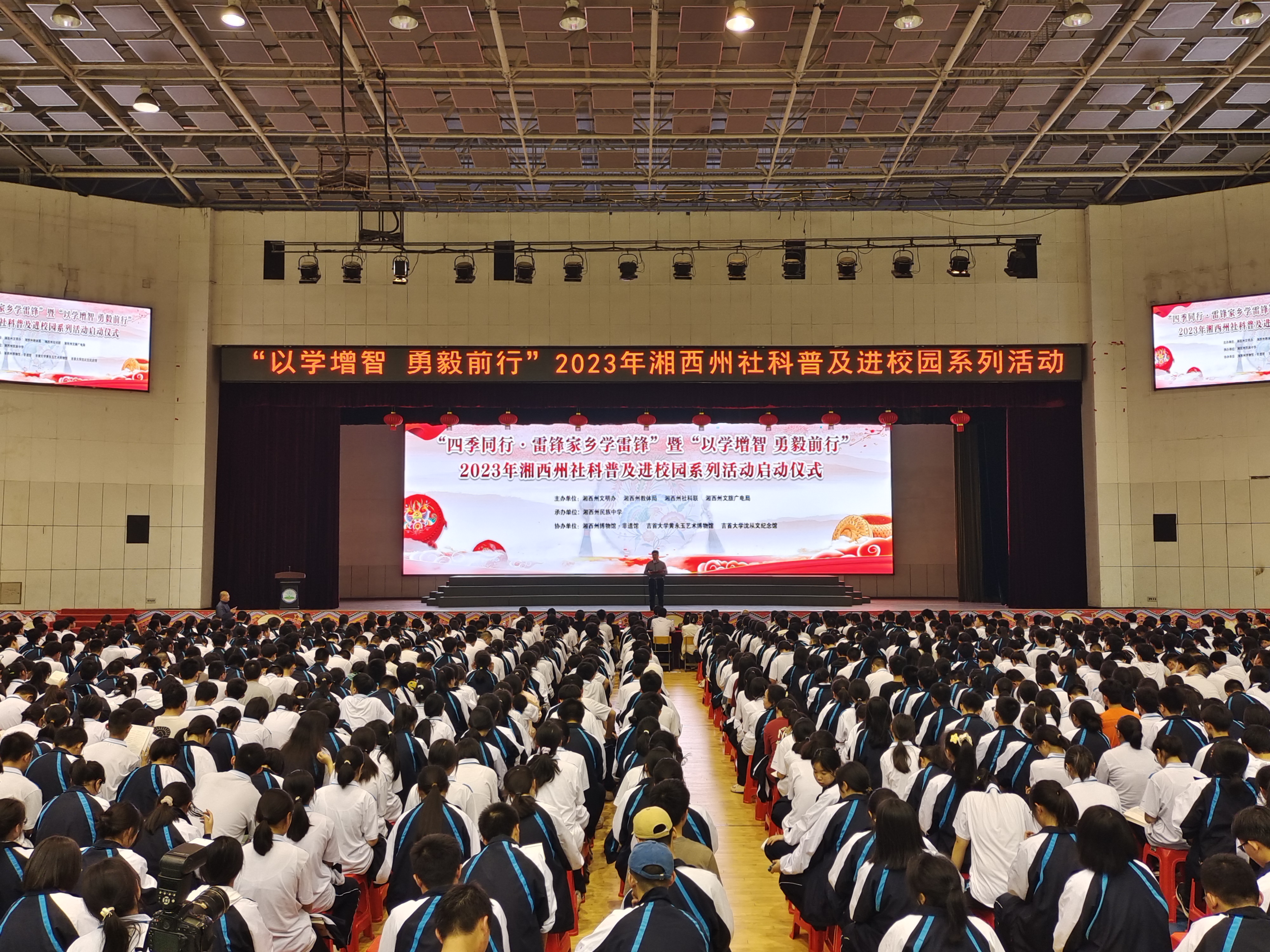 本网讯(学生记者 徐毅豪)为学习贯彻党的二十大精神,落实中央和省、州关于繁荣哲学社会科学的部署要求,进一步扩大社科普及的社会影响力,弘扬科学精神、普及科学知识,2023年4月17日,“以学增智 勇毅前行”2023年湘西州社科普及进校园系列活动启动仪式在湘西州民族中学举行,我校黄永玉艺术博物馆、沈从文纪念馆作为协办单位受邀出席启动仪式。