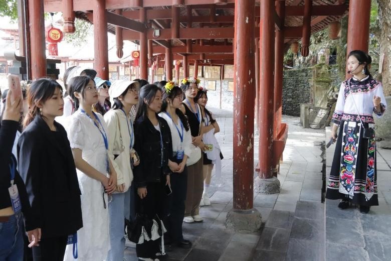 我校团队成员在苗王城讲解员带领下,了解苗王城的建筑历史以及建筑风格,了解当地非物质文化遗产的发展情况,领略苗族文化的博大精深。我校团队成员穿梭在青石板铺成的巷道中,并不时与苗王城讲解员交流学习讲解的经验。我校团队成员表示,要努力向苗王城讲解员学习,不断优化自我讲解风格,增强讲解的趣味性。