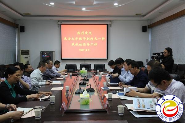 陈华发表讲话。他对我校领导的重视和热情接待表示诚挚的感谢。在介绍了延安大学的教学工作、人才队伍建设、学科建设等情况后,他说,延安大学十分关注吉首大学的办学路子,并十分重视与吉首大学同仁的交流,希望通过此次交流,能充分吸收吉首大学的办学经验和方法。