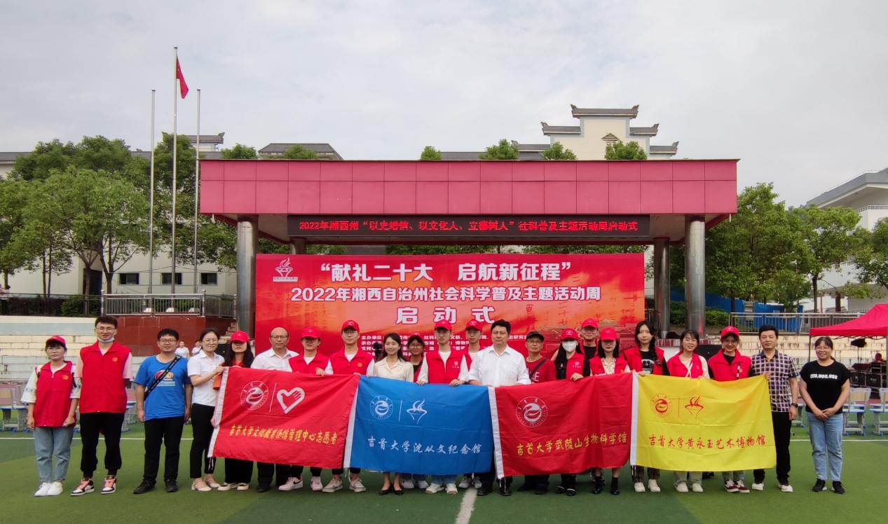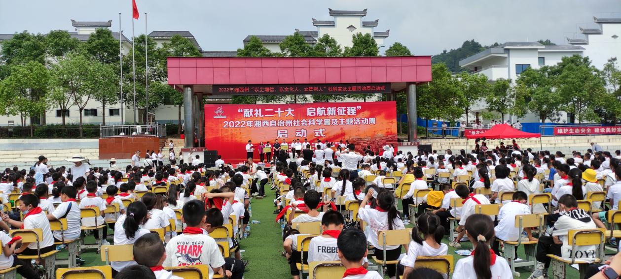 本网讯(学生记者刘亮)2022年6月10日,“献礼二十大·启航新征程”2022年湘西自治州社会科学普及主题活动周启动式在龙山县里耶小学举行。本次活动由州委宣传部、州社科联、州文联、州教体局、州委党史研究室等单位联合举办,我中心作为协办单位参与了此次活动。