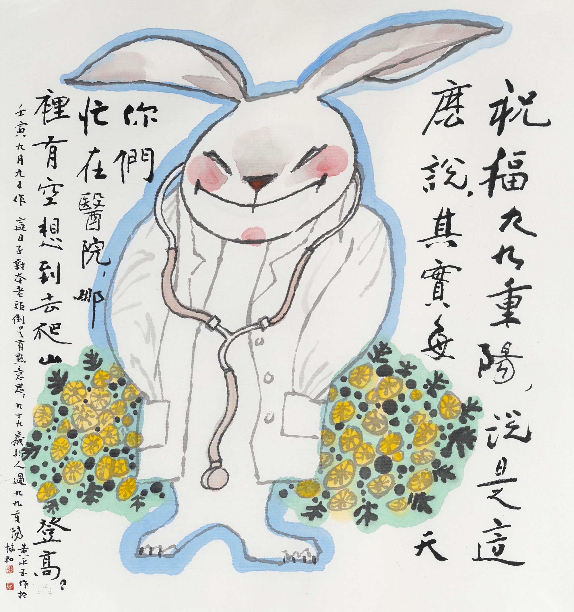 9 兔子医生 黄永玉 纸本水墨设色 45cm×48cm 2022年