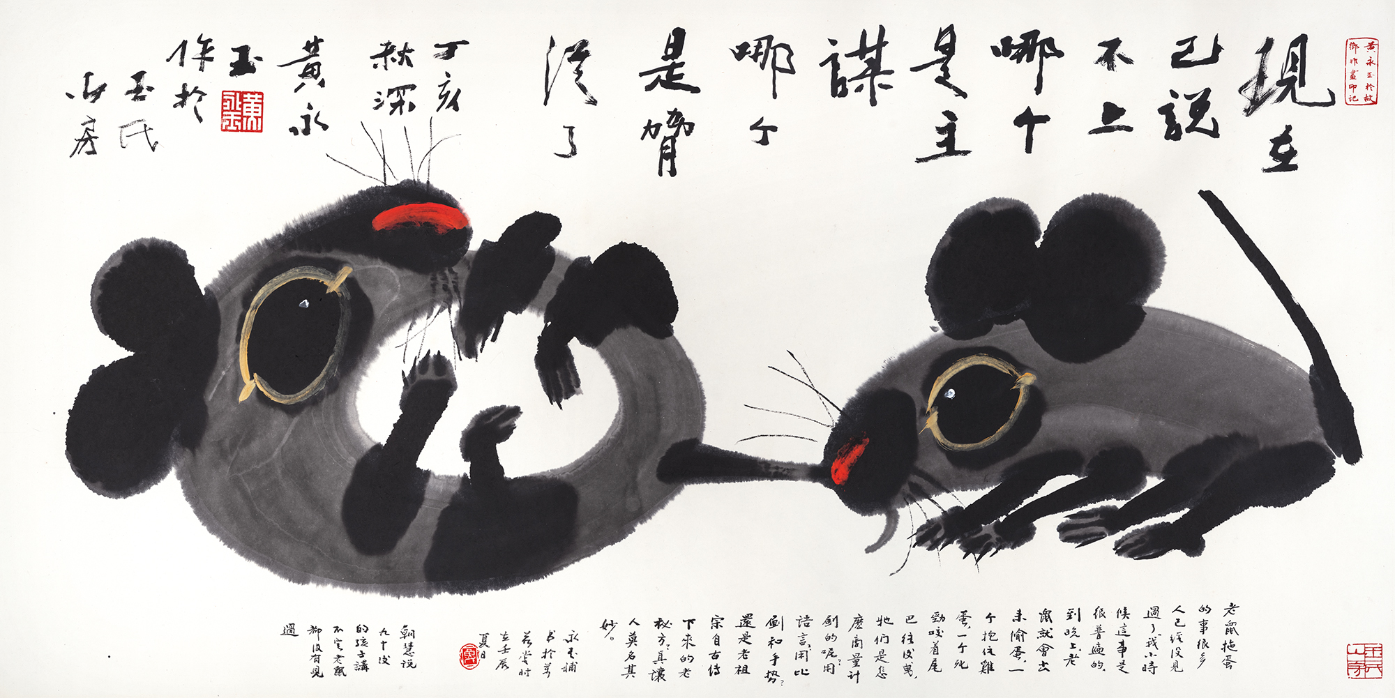12 老鼠拖蛋 黄永玉 纸本水墨设色 138cm×69cm 2007、2012年