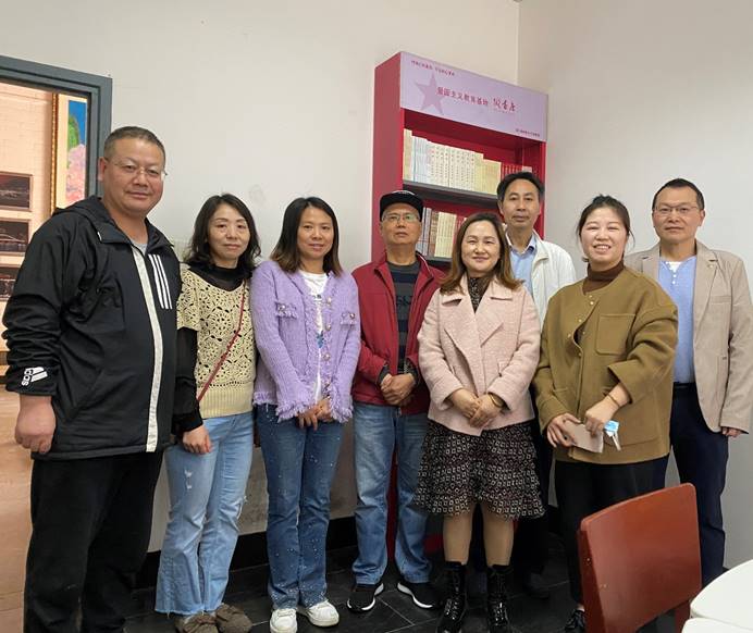 图为湘西自治州新华书店工作人员在吉首大学文化博览园红色微书店前合影