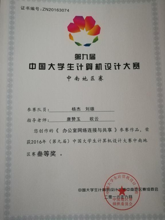(全国大学生计算机大赛中南地区赛区三等奖) |