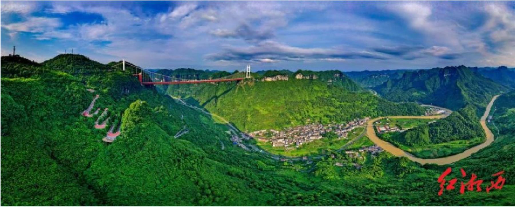 湘西联合国教科文组织世界地质公园面积2710平方公里,由南自北纵跨湘西州7个县市,包括矮寨、天星山、芙蓉镇、红石林、十八洞、吕洞山、洛塔7个园区,地处云贵岩溶高原东部边缘斜坡地带,不仅拥有由国际地质科学联合会终审批准的寒武纪芙蓉统排碧阶“金钉子”和寒武纪苗岭统古丈阶“金钉子”,还分布着全球规模最大的红色碳酸盐岩石林,即古丈红石林,是目前全球在奥陶系红色碳酸盐地层上发育的规模最大的一片红色石林景观,也是中国南方喀斯特演化故事的重要组成部分。